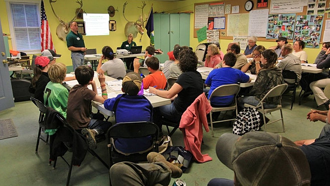 Our summer camp is a week long sleep away camp (9 weeks) Two types basic and advanced. In order to attend an advanced week must graduate from basic program which includes firearm education and bow-hunter education. Prior to attending, campers are required to complete a manual and workbook that is the same as the one used in hunter safety courses. At camp they go through a series of courses that teach them about what they read in the manual as well as the history of hunting. About 30% of the camp is focused on hunting, the other 60% is natural resources, wildlife bio. and outdoor recreation activities. For the advanced sessions, there is a series of live fire opportunities in the presence of a state game warden.